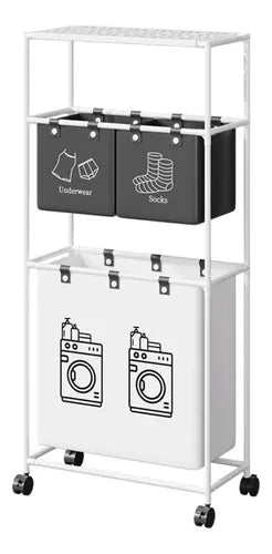 [Versátil]: Esta cesta clasificadora de ropa te ayuda a organizar la ropa sin esfuerzo, lo que te permite clasificar la ropa interior, los calcetines, los oscuros y el blanco convenientemente, agilizando tu rutina de lavandería al clasificar previamente la ropa a medida que se acumula, haciendo que el día de lavandería sea muy fácil. No sólo para la colada. Utilízalo para guardar juguetes, equipos deportivos u otros artículos del hogar para mantener tu espacio ordenado y organizado. Además, su elegante diseño complementa cualquier decoración, mejorando la estética de tu área de lavandería.