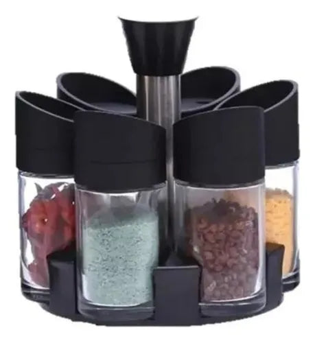 Condimentero giratorio con capacidad para 6 especias, fabricado en plástico de alta calidad. Ideal para mantener tus especias organizadas y al alcance de la mano. Diseño compacto y funcional que ahorra espacio en tu cocina. Fácil de limpiar y mantener. Perfecto para cualquier tipo de cocina, desde la más moderna hasta la más tradicional. Este especiero incluye 6 frascos para especias, lo que te permite tener una variedad de condimentos siempre a mano. Aunque no es extensible, su diseño eficiente maximiza el uso del espacio. No cuenta con soporte para toallas de papel, pero su enfoque en la organización de especias lo hace indispensable en cualquier cocina. El modelo FH-46 garantiza durabilidad y practicidad en su uso diario.