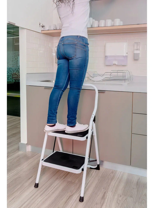 Escalera 3 Pasos Metálica Antideslizante Pesada 150 Kg Color Blanco