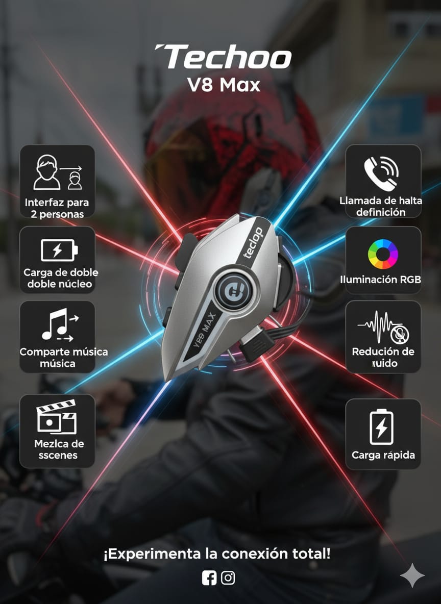 El intercomunicador Teclop Y30 Max es la herramienta perfecta para mantenerte conectado mientras conduces tu moto. Diseñado con tecnología avanzada, ofrece comunicación clara, música compartida y funciones que mejoran la experiencia de viaje tanto para ti como para tu acompañante.