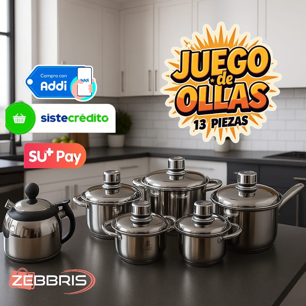 EL JUEGO DE 13 PCS, CON CONTENIDO DE: 1- Tetera 3 litros en acero 1-Olla de 16 cm con capacidad 1.8 litros con tapa 1-Olla de 16 cm con capacidad 1.8 litros con tapa 1-Olla de 18 cm con capacidad de 2.5 litros con tapa 1-Olla de 20 cm con capacidad de 3.4 litros con tapa 1-Olla de 24 cm con capacidad de 6.3 litros con tapa 1-Sartén de 24 cm con capacidad de 3 litros con tapa