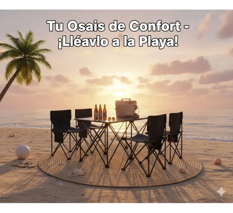 Fabricada con materiales resistentes y livianos, ofrece estabilidad, durabilidad y fácil transporte gracias a su sistema plegable con estuche individual tanto para la mesa como para las sillas. Ideal para quienes buscan practicidad sin renunciar al confort.